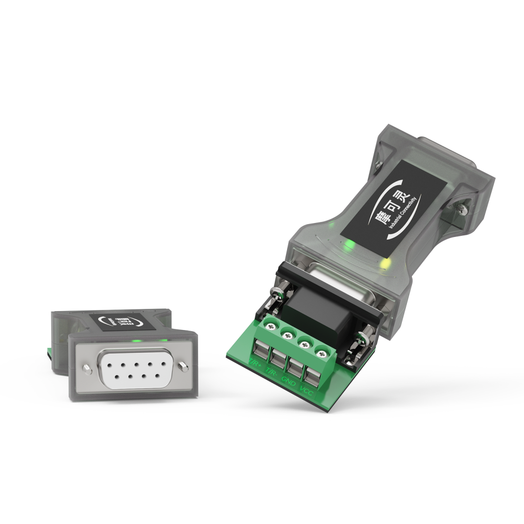 在组网能力与物理布线方面,该转换器采用半双工差分传输模式,理论支持 32 个节点的网络拓扑,485通信距离峰值 1.2 公里。针对工业现场的严苛接线需求,CH401 主端口采用标准 DB9 母头(DB9F)以无缝对接常见电脑或上位机,输出端则标配高可靠性的四位带螺丝接线端子(4P),精准支持 RS-485 差分信号(A/B)、电源/信号地(GND)及外部独立 VCC 电源的有序接入,以极简的设计逻辑,构筑了坚实的现场通信基石。