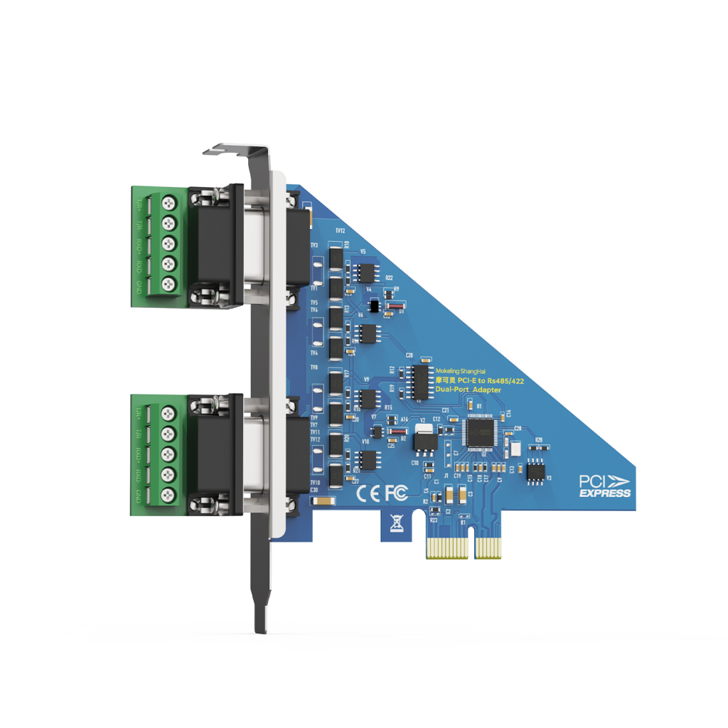 PC485-7922是PCI-E转两口RS-485/422串口卡,能够将单端的PCI-E信号转换为RS-485/422信号,带有快速的瞬态抑制保护器,此保护器被设计用来保护RS-485/422接口,采用当今先进的TVS管,正常 情况下TVS管呈高组状态,当TVS管两端经受瞬间的高能量冲击时, 它能以极高的速度将其两端的阻抗降低,吸收一个大电流,从而将 其两端的电压钳制在一个预定的数值上,保护后面的电路元件不因瞬态高压冲击而损坏。